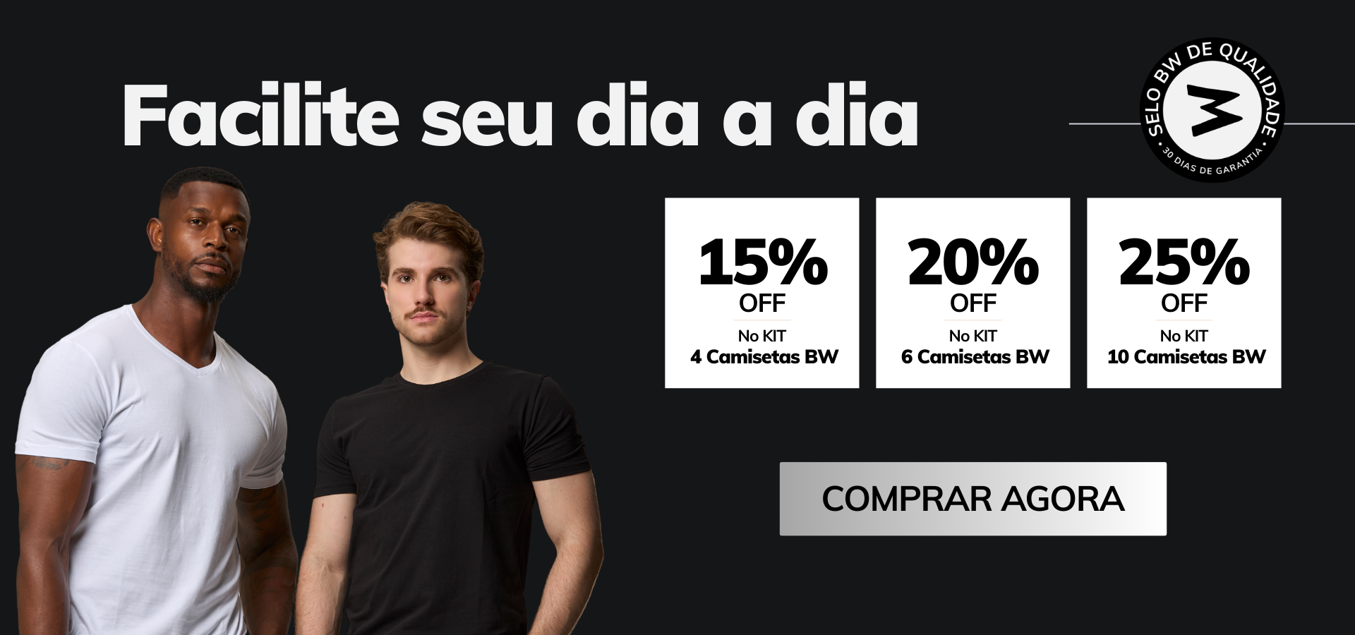"Eu pagava caro em algumas camisetas básicas, porque eu sempre busquei qualidade. Na loja, o tecido parecia ótimo, porém após as primeiras lavagens as camisetas já encolhiam e perdiam aquele brilho e tom de cor bonito. Eu me surpreendi com a camiseta BW. É de longe a melhor que eu já usei. E vale muito comprar o KIT por causa do desconto."